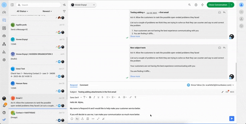 Una vez que se complete la capacitación, podrá generar automáticamente respuestas inteligentes en el Módulo de Mensajes en función de los archivos cargados. En resumen, podrá brindar a los clientes información contextual y coherente con solo hacer clic en un botón.
