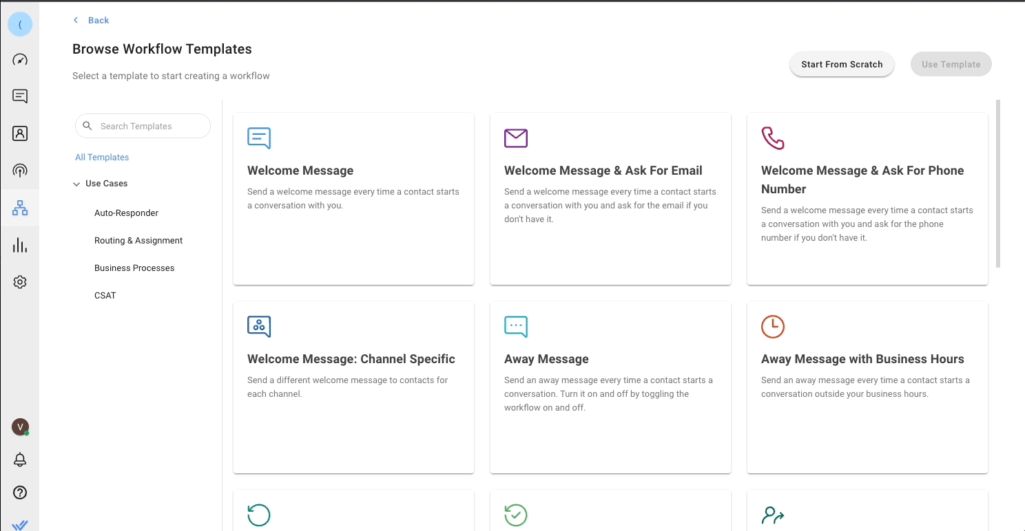 Hemos ampliado nuestra biblioteca de plantillas de flujo de trabajo. Las nuevas plantillas de flujo de trabajo están diseñadas para ayudarlo a optimizar su proceso de servicio al cliente y obtener más información sobre las necesidades de sus clientes. Estas son algunas de las nuevas plantillas y sus casos de uso: