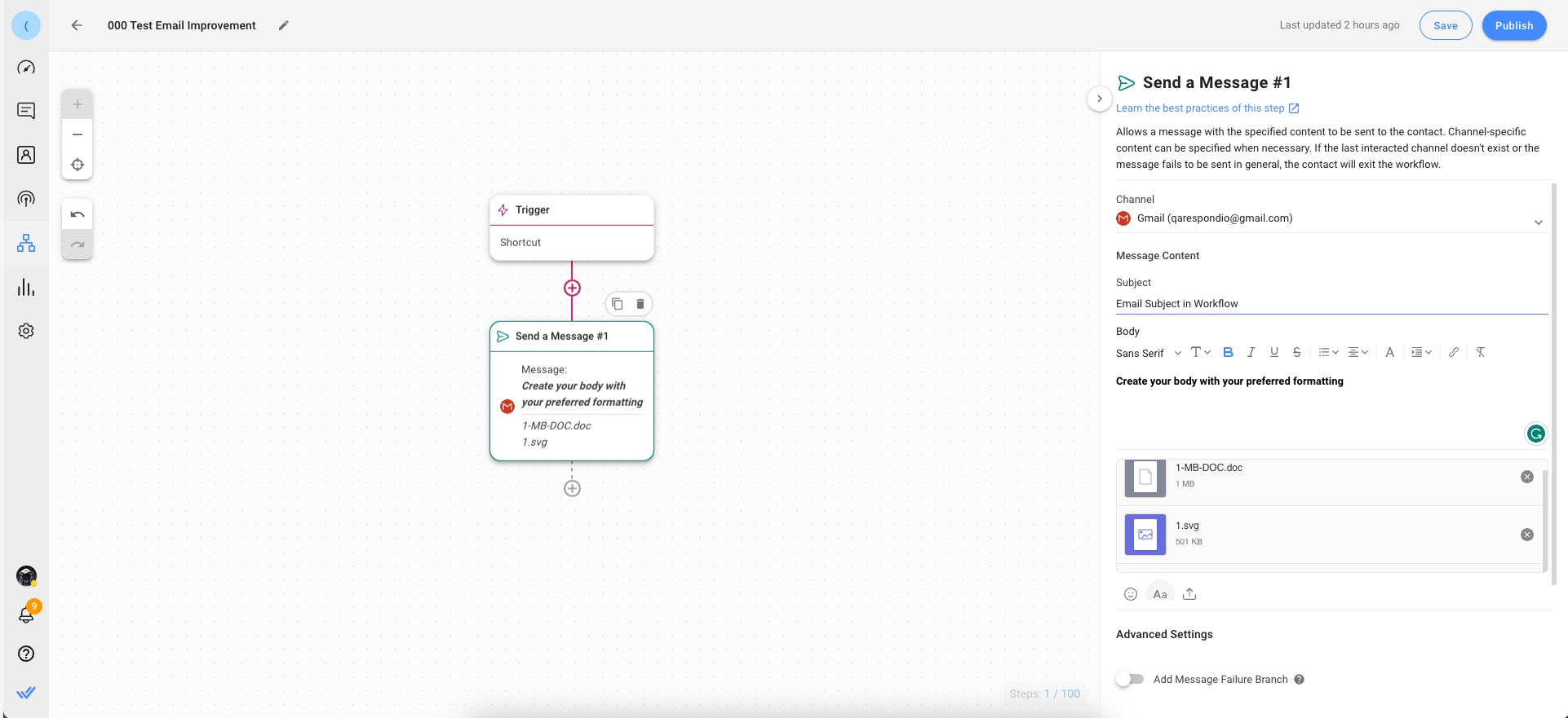 Redactar y formatear su correo electrónico utilizando el paso Enviar un mensaje en el módulo de flujos de trabajo.