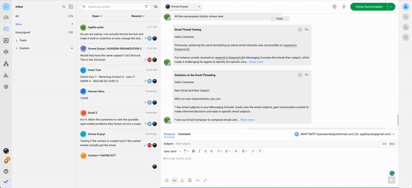 Además, por parte del cliente, las respuestas no se organizaron en el mismo hilo dentro de su bandeja de entrada y, en cambio, aparecieron como correos electrónicos nuevos. Con nuestras nuevas mejoras, podrás: