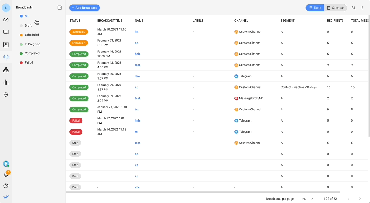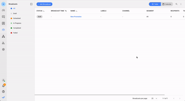 Con la nueva versión, las difusiones se crean en estado de borrador de forma predeterminada y permanecerán allí hasta que las programe o envíe. Esto le permite realizar cambios o reprogramar transmisiones hasta el último minuto.