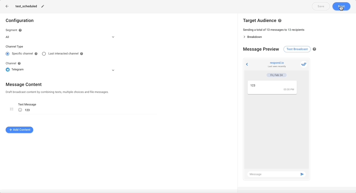 El nuevo generador de difusiones le permite configurar un envío en múltiples canales simultáneamente, obtener una vista previa de cada mensaje y enviar transmisiones de prueba.