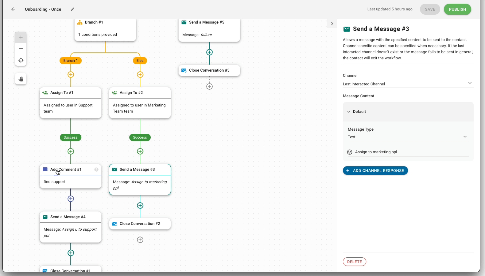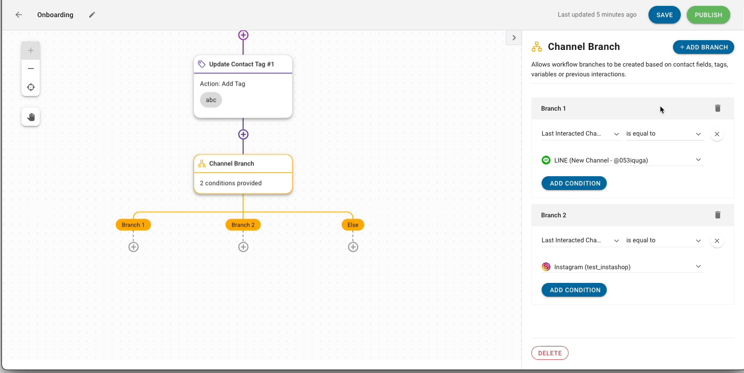 Eso no es todo. Como los contactos tienen una variedad de propósitos y necesidades de interacción, ahora puede crear ramas específicas para diferentes recorridos de usuario. Establezca condiciones para dirigir los contactos a la rama correcta y cree ramas a prueba de fallos para aquellos que se encuentren fuera de las condiciones. ¿Qué te parece eso para un toque personal?