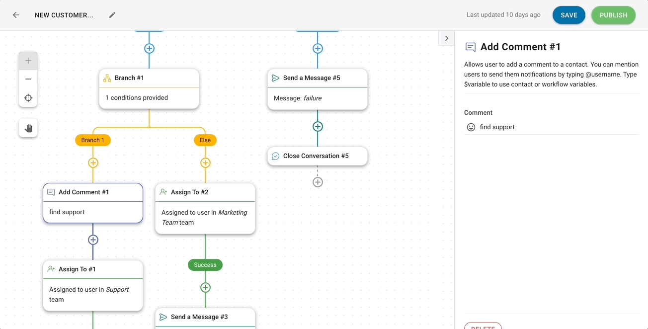 Tú lo pediste y lo entregamos. Después de recibir numerosas solicitudes de más opciones de asignación automática, nos aseguramos de que esos deseos se cumplieran en los flujos de trabajo. Echa un vistazo al paso "Asignar a", que te ofrece una flexibilidad sin igual para asignar contactos a cualquier persona en el espacio, usuarios específicos e incluso usuarios de equipos específicos, ¡una función completamente nueva! También puede usar condiciones como canales, etiquetas y campos personalizados para eliminar contactos de diferentes ramas y asignarlos a los usuarios en consecuencia. Obtenga más información sobre "Asignar a" aquí.