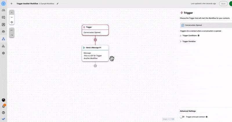 Este paso le permite iniciar un nuevo flujo de trabajo desde otro flujo de trabajo para crear una automatización más sólida y agilizar la transición de sus contactos de un flujo de trabajo a otro con facilidad.