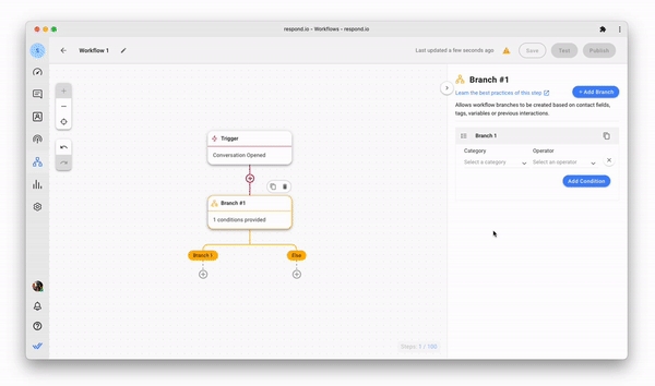 Un caso de uso es crear un flujo de trabajo que dé seguimiento a las difusiones. Esta categoría de Rama le permite determinar si la conversación se inició en respuesta a una difusión en particular, lo que le permite diseñar un recorrido de flujo de trabajo personalizado para este contacto.