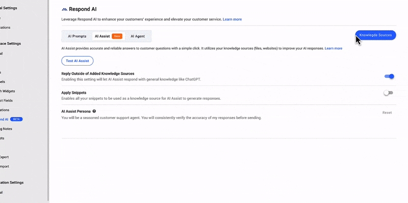 Además, tiene el poder de darle al Asistente de IA su propio carácter y estilo únicos, asegurando que sus respuestas reflejen su marca a través de nuestra función AI Assist Persona.