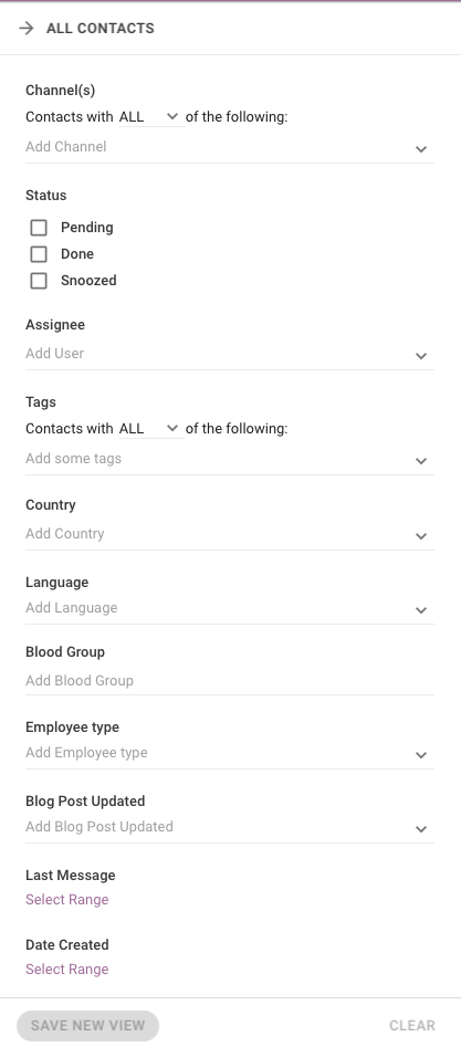 [NUEVO] Ver filtros incluye campos de contacto ¡Sí lo hicimos! Incluimos todos los campos de contacto en los filtros de vista para que pueda segmentar sus contactos de forma más específica.