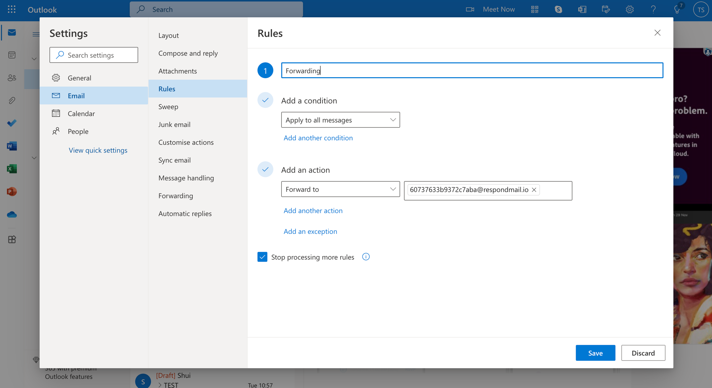 Paso 2: Compruebe la regla de reenvío de correo electrónico configurada en la bandeja de entrada de correo