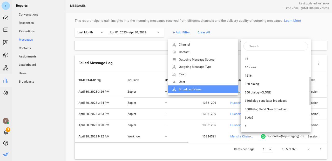 Paso 2: Filtre los mensajes Vaya al módulo Informes > Mensajes > Registro de mensajes fallidos.