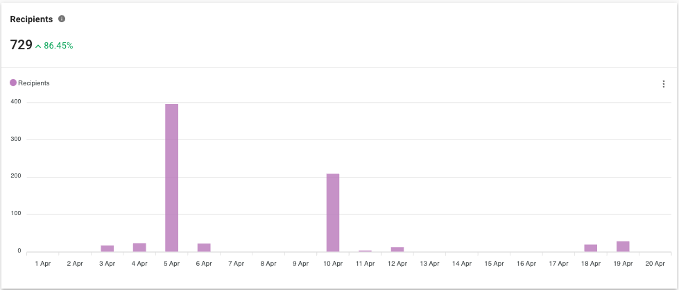 Los gráficos filtrarán todas las difusiones que se enviaron en abril y mostrarán datos solo de las difusiones enviadas en abril.