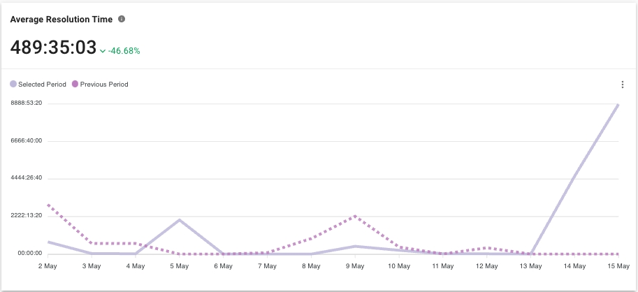 Gráfico de líneas Compara el tiempo promedio de resolución para el período seleccionado con los datos del período anterior.
