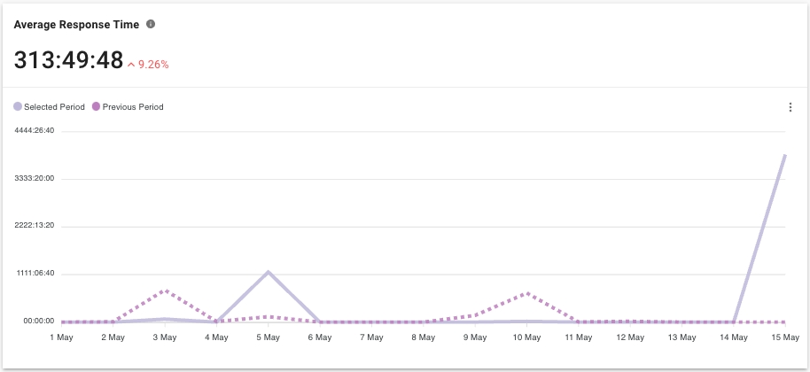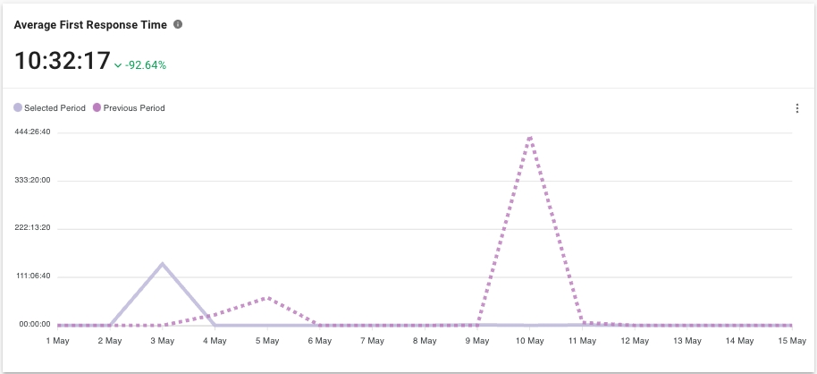 Gráfico de líneas Compara el tiempo promedio de primera respuesta para el período seleccionado con datos del período anterior.