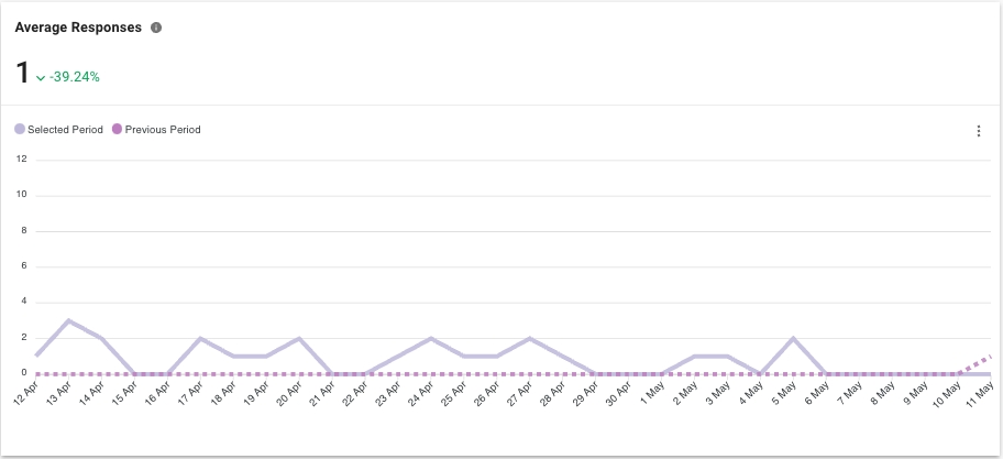 Gráfico de líneas Compara el número promedio de respuestas de cualquier usuario durante el período seleccionado con los datos del período anterior.