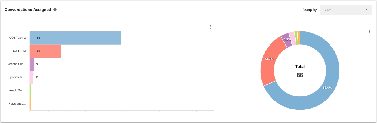 Métrica Número y porcentaje de conversaciones de los usuarios o equipos asignadas dentro del período seleccionado. La cantidad de asignaciones se agrega cada vez que se asigna una conversación a un usuario o equipo.